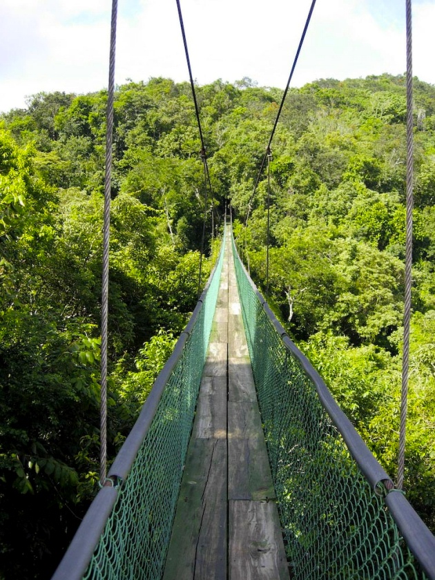 Jembatan Gantung Arenal, Costa RicaLetaknya tiga kilometer berjalan kaki menembus hutan hujan Costa Rica. Ada enam jembatan suspensi, yang terbesar panjangnya hampir 100 meter dengan tingginya 45 meter di atas tanah.